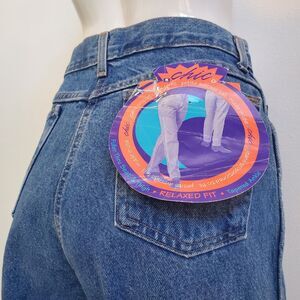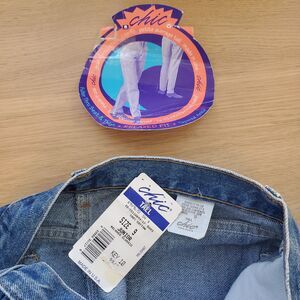 NWT deadstock vintage 90s Chic blue denim jeans. High-waisted with zipper fly and slightly tapered leg.