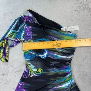 NEW Vintage Cache Ruched One-Shoulder Top Paisley Statement Blouse Y2K Stretch