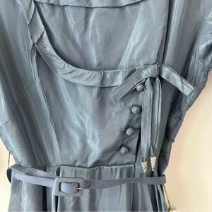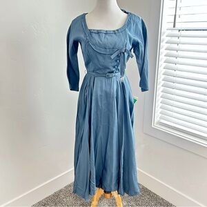 NEW Vintage Calbette Deadstock Blue Tafeta A Line Belted Dress Powder Blue 50s