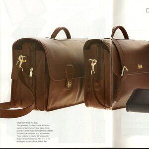 Features: Two gussetted pockets. Inside front & back compartments. I side ack zipper pocket. Center zipper compartment padded for computer accessories. Three diskette pockets. 44" adjustable strap with pad detaches. Original Coach leather tag.