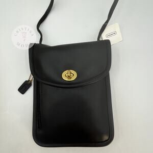NEW WITH TAGS Vintage Coach #6908 Tourist Pouch in Black Leather