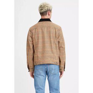 Description: This is a genuine Men's Levi's Premium Houndstooth Wool Blend Trucker Jacket. No rips, tears, marks, stains, flaws or defects. NO damages. The jacket features houndstooth design, front button closure, soft corduroy collared neckline, long sleeves with button cuffs, front hand pockets, flap chest pockets with single-button barrel cuffs, signature Levi's logo tab on left chest, adjustable button-tabs at hem, antiqued silver-tone hardware, relaxed fit, fully lined, soft wool with polyester blend fabric, imported. Retail $118