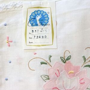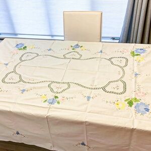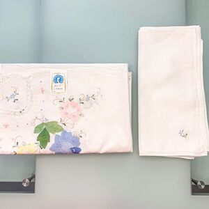 NEW Vintage Floral Embroidered Tablecloth + 8 Napkins