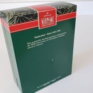 Vintage Hallmark Keepsake Ornament - Santa Maria boat American Commemorative. Commemorates the 500th Anniversary of Christopher Columbus. Dated 1992. Brand new in box - never removed.