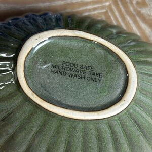 Simply Beautiful Fabulous & Functional! Gorgeous vintage inspired Shabby Chic Cottage Farmhouse Green Distressed finish Ceramic Serving Bowl shaped like a sunflower! Gorgeous brown distressed accents give a lovely aged appearance! Fabulous piece for your kitchen, serving buffet sideboard, hutch, cabinet, bakers rack or dinner table! Beautiful & functional! Great for serving dips, sauces, salad or taco toppings! Add to a dessert table to hold sweets or candy! Fantastic on a coffee bar, dining room table, kitchen cabinet or counter! Use on your covered porch or patio fill with birdseed for a small bird feeder or use in a bathroom as a soap or bath salts dish! Pairs well with modern farmhouse, cottage or French Country, Boho or vintage shabby chic styles! Food safe microwave safe! Makes a lovely addition to your Thanksgiving holiday dinner table!
