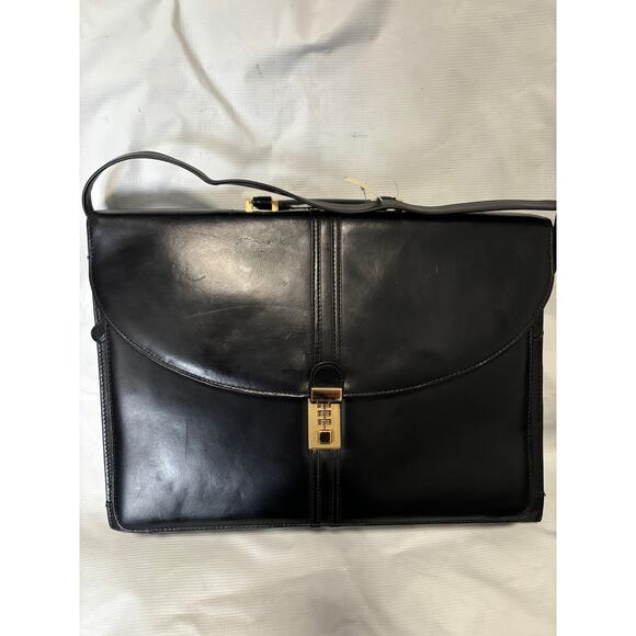 NEW Vintage Leather Briefcase Portfolio Bag by Exeter LTD Black NEW