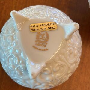 NEW & very unique, hard to find piece. Lenox Sphere Cigarette Holder and lid. In Cream Porcelain, hand decorated with 24K Gold. Still has label where purchased, Eckerman Jewelry, Grinnell, IA.