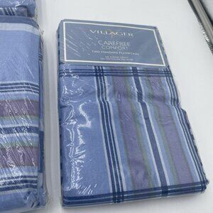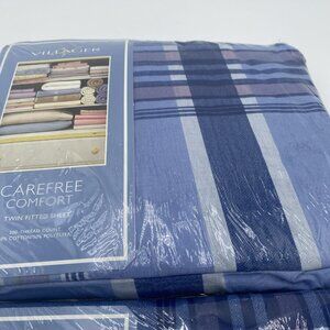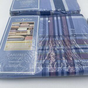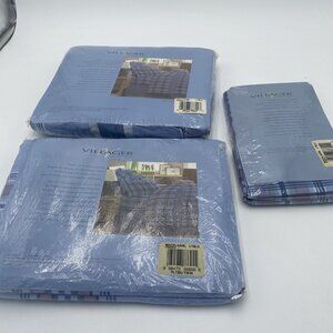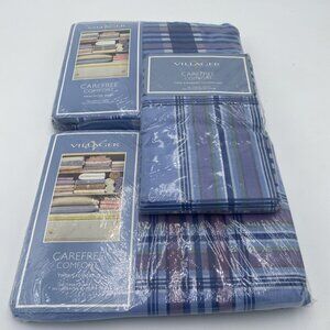 NEW Vintage Liz Claiborne Villager Twin Sheet Set Blue Plaid 3 Pcs NOS Made USA