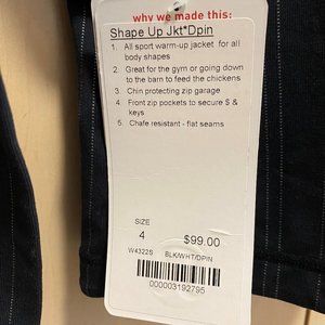 NEW Vintage Lululemon "Shape Up" Jacket Size 4! Black Pinstripe! NWT!