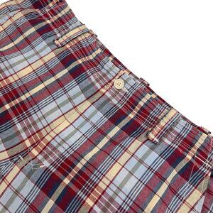 These are awesome vintage brand new cargo style shorts from Ralph Lauren Jeans Company! They are the designed in a really cool plaid featuring red, blue and yellow in a lighter weight for comfort!