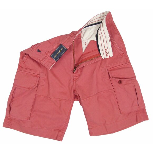 NEW Vintage Ralph Lauren Cargo Shorts! 30 Weathered Pinkish Red Player on Back