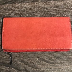 NEW Vintage Red Suede Wallet 6 Card Slots Zipper Pocket Snap Closure
