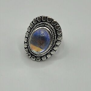 NEW Vintage Shiny Aura Moonstone Oval Adjustable Ring