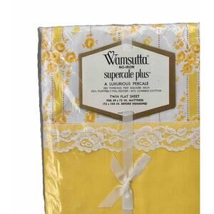 Introducing a beautiful vintage Wamsutta Supercale Plus Twin Flat Sheet in Rambling Rose White/Yellow. This lovely sheet features a delicate floral pattern on a soft cotton blend material that is sure to add a touch of elegance to any bedroom. Measuring 108 inches in length and 72 inches in width, this flat sheet is perfect for a twin-sized bed.