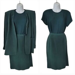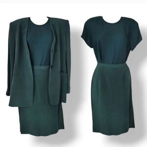 NEW Vintage Y2K 3 PC Jones New York Monochrome 100% Silk Skirt Suit Niagara Teal