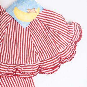 Matching 3-piece set. Vintage Y2K striped red and white sailor pants with button details and pockets. Elastic pull-on waist. Wide leg capri style. Matching hat. Includes long sleeve, cotton cream bodysuit by Carter's.