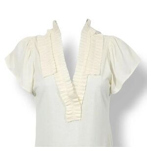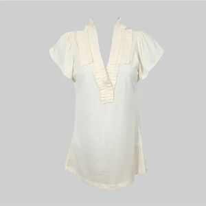 NEW Vintage Y2K Banana Republic Ruffle Pleat Flutter Sleeve Top In Ivory Size XS