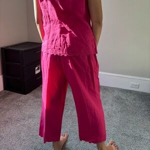 NEW Vintage Y2K Fuchsia Pink linen two-piece set with button-up embroidered top and capri pants - Small