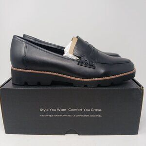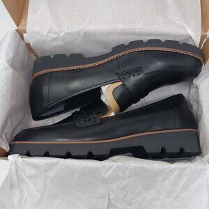 NEW Vionic Cheryl II Nappa Leather Black Loafers Size 12W Lug Sole Penny Loafers