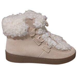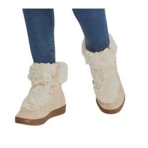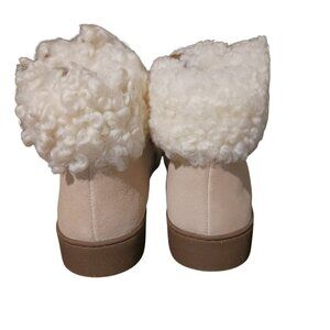 Keywords: Vionic booties, women's footwear, sand booties, cream booties, winter shoes, sheep fur, sherpa booties, lace-up boots, suede shoes, 7.5 size, rubber sole, stylish boots