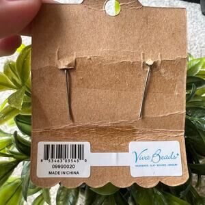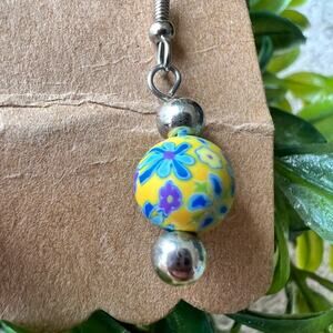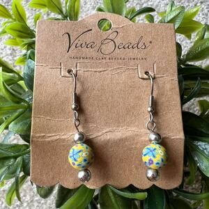 NEW Viva Beads Handmade Clay Round Yellow Floral Print Dangle Earrings
