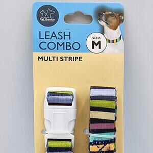 NEW Vivitar Pet Genius Multi Stripe Adjustable Dog Collar & Leash Combo, Size M