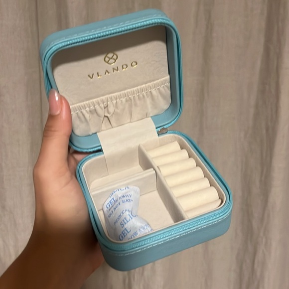 Bold baby blue leather travel case for jewelry. Never been used. New with “tag”