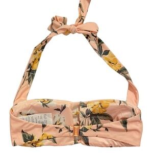 NEW Volcom "Growing Solo" Peach Floral Caged Bandeau Halter Bikini Top Sz. S