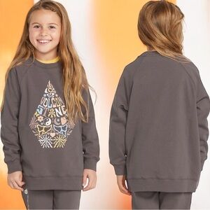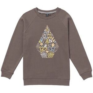 NEW Volcom Truly Stokin' Boyfriend Crew Sweatshirt Brown Yellow Girl's Size M