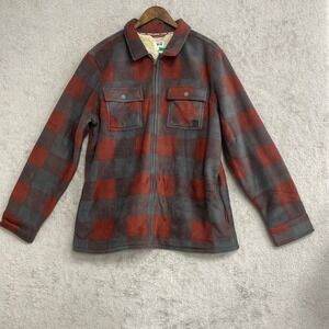 NEW Voyager Men's XL Plaid Fleece Lined Full Zip Jacket Shirt Red Grey