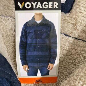 NEW Voyager XXL Blue Plaid Sherpa-Lined Shirt Jacket Snap button H1120
