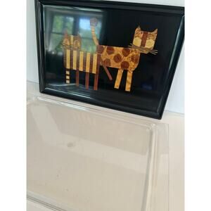 Vtg 1960s Two Kitten Cat MCM Wood Brass Inlay Handcrafted Serving Tray