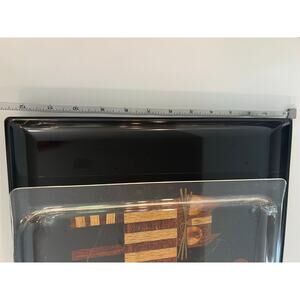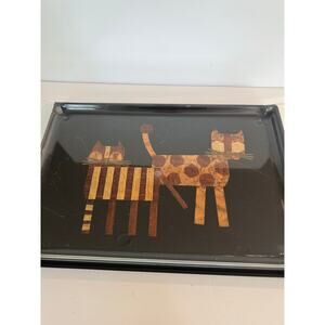 NEW Vtg 1960s COUROC Two Cat MCM Wood Brass Inlay Handcrafted Serving Tray JL
