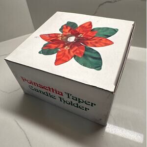 NEW Vintage Dept 56 Metal Poinsettia Taper Candle Holders Christmas Holiday Decor