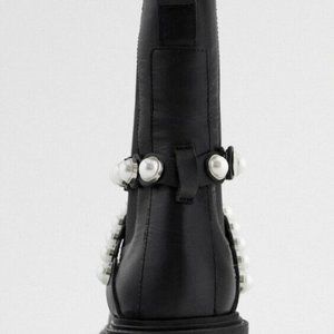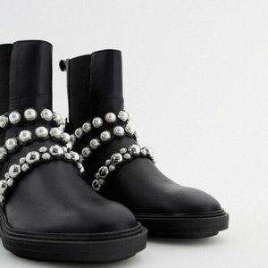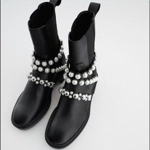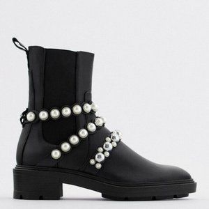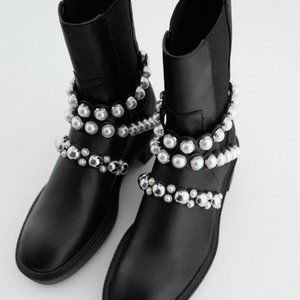 NEW W/ BOX Zara Pearl Strapped Leather Ankle Boots