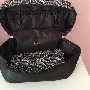 Brand new with tag, retail price is $70. Bra and Pantie travel bag, black and white. Willing to post more pictures, just ask! never used :)