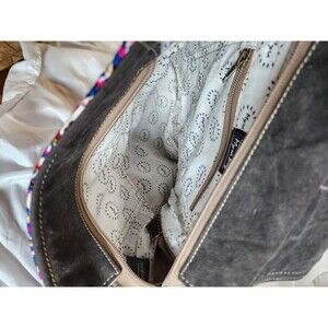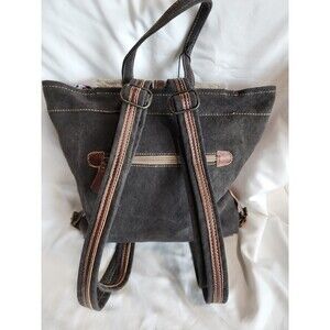 NEW W/ Tags Myra Bag Handmade Vibrant Backpack Upcycled Canvas & Hairon Cowhide