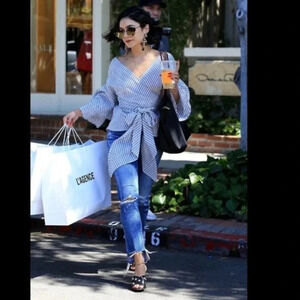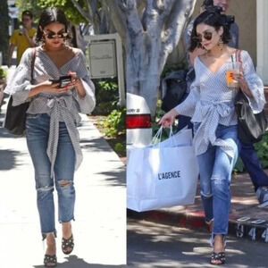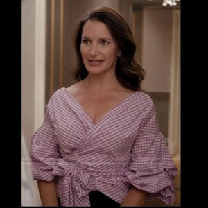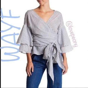 NEW WAYF Beckett Gingham Tiered Bell Sleeve Wrap Tops Size M