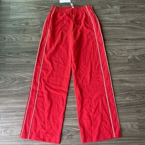 NEW WAYF Womens London Track Pant Red with White Pipping Wide Leg
