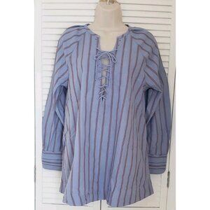 NEW WE THE FREE BY FREE PEOPLE LISBON STRIPED LACE UP TUNIC BLUE SMALL