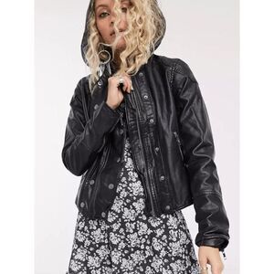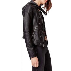 NEW WE THE FREE by Free People Women’s Small New Dawn Vegan Faux LeatherBlack Moto Jacket