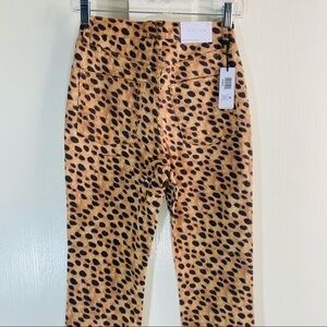 NEW WE WORE WHAT Stiletto High Waist Split Hem Leopard Skinny Jeans In brown