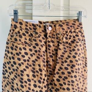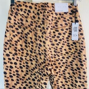 NEW WE WORE WHAT Stiletto High Waist Split Hem Leopard Skinny Jeans In brown
