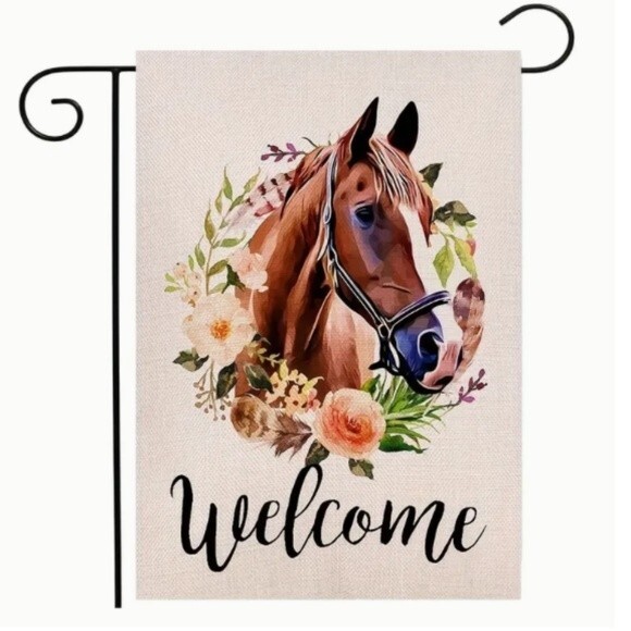 NEW WELCOME HORSE FLORAL DOUBLE SIDED GARDEN FLAG 12" X 18" PORCH HOME DECOR