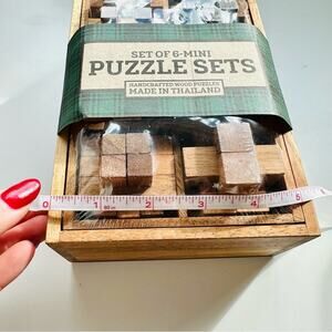 NEW WEST ELM Brown Tan Handcrafted Hand Wood Wooden Mini Puzzle Box Gift Set 6