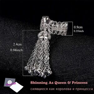 New white gold plated over sterling silver crown tassel ring. Adjustable resizable