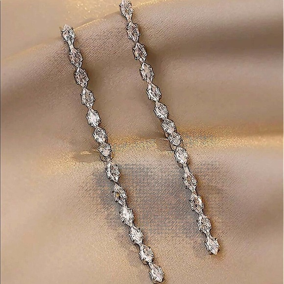 NEW WHITE GOLD ZIRCON DROP DANGLE EARRINGS