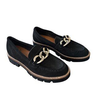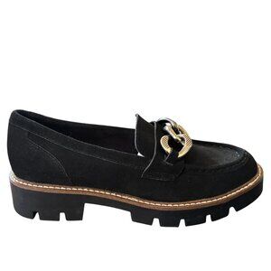NEW WHITE MOUNTAIN Goodie Loafers in Black Suede Lug sole Chain detail SZ 8.5