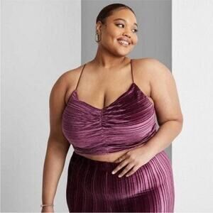 NEW WILD FABLE Dark Purple Ribbed Striped Velvet Crop Top Bralette Cami Tank XL