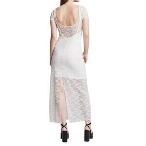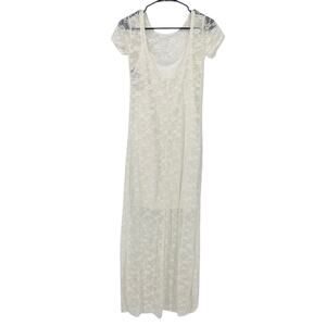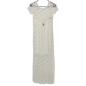 NEW WILD FABLE Sheer Floral Partially Mini Lined Maxi Dress White Size Small Short Sleeve Low Back Slit Hem Sexy Date Night Night Out